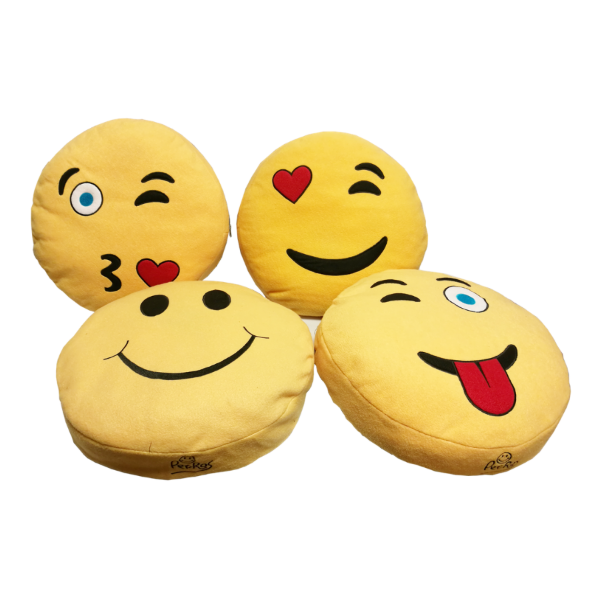 4 Motivos de los emojis mas divertidos, almohadones rellenos con cierre para facil lavado.