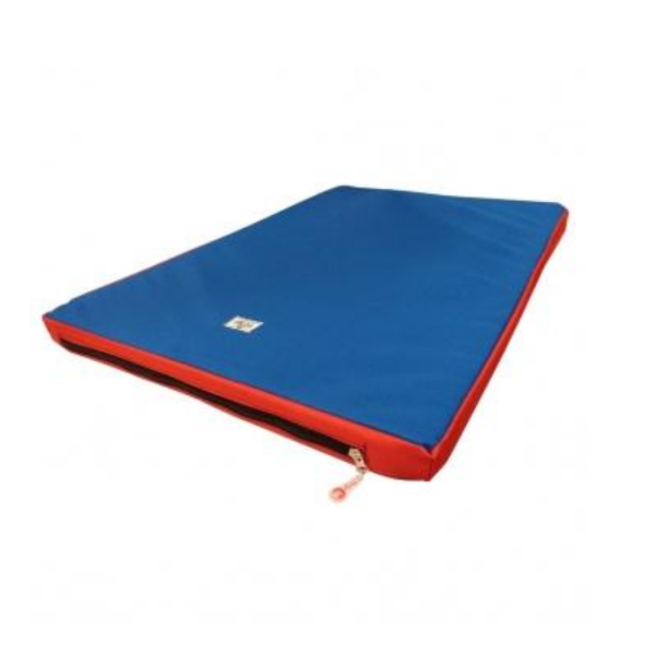 Colchoneta fabricada con relleno de goma espuma de alta densidad y tela tipo cordura, de calidad impermeable y antidesgarro. Posee cierre en uno de sus extremos lo que permite que sea desarmable y facilmente lavable.