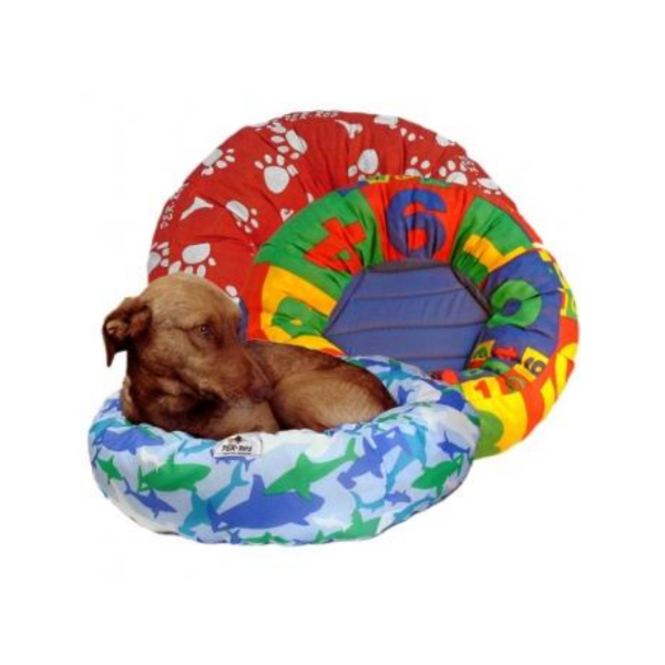 Moises tipo aro, relleno con superficie de tela de algodón Per-Ros. En contacto con la mascota, contiene tela de algodón con diseños.