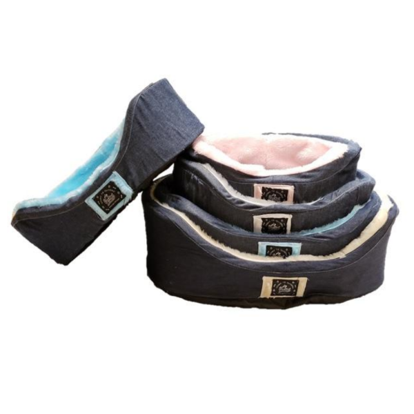 Creado con base de goma espuma de alta densidad, incorpora tela de jean en combinacion con tela de corderito. Facilmente desarmable y lavable.