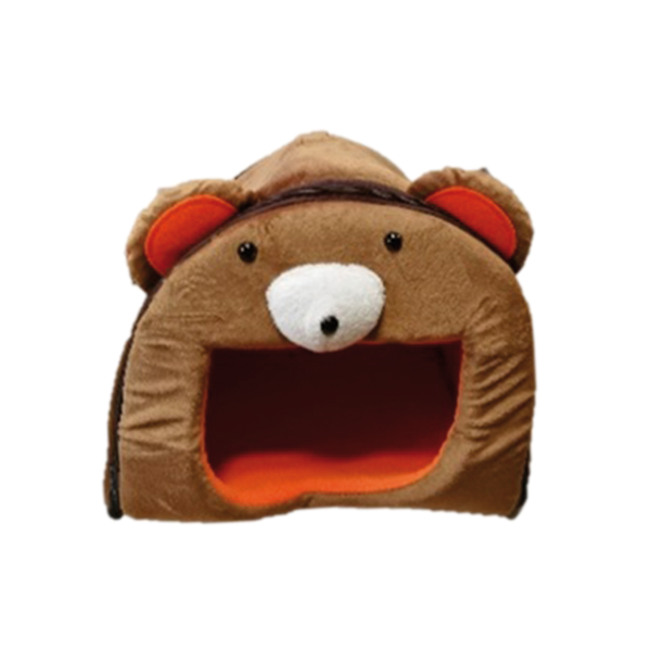 Moises fabricado en forma de oso con tela de plush, el mismo se arma replegando un cierre que contiene.