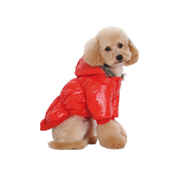 Campera de tipo inflable con diseño similar al de los humanos con detalles en simil piel, 4 colores.