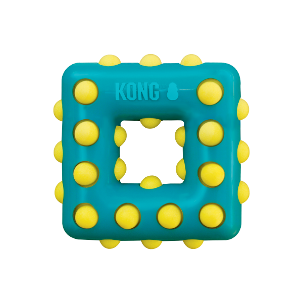 KONG Dotz proporciona una variedad de diversión al masticar con texturas en capas que atraen y deleitan a los masticadores más entusiastas. El rebote juguetón e impredecible del juguete genera emoción en los perros mientras las protuberancias están ocupadas limpiando dientes y encías.