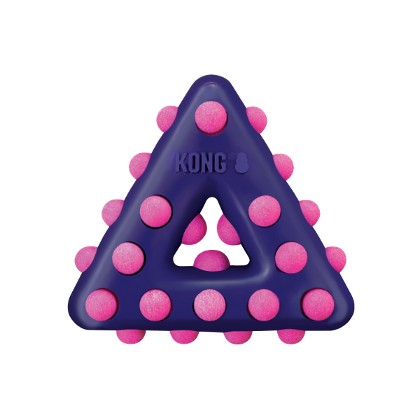 KONG Dotz proporciona una variedad de diversión al masticar con texturas en capas que atraen y deleitan a los masticadores más entusiastas. El rebote juguetón e impredecible del juguete genera emoción en los perros mientras las protuberancias están ocupadas limpiando dientes y encías.