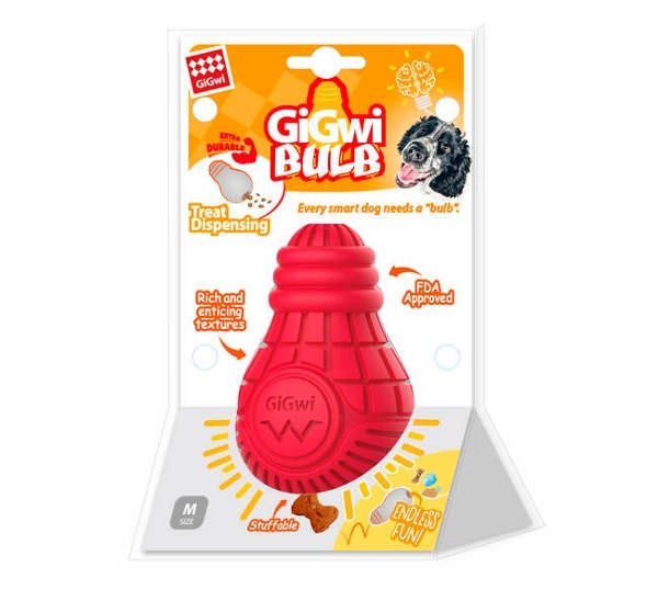 Gigwi Bulb es un juguete para masticar de alta calidad que ha sido diseñado con la forma de una bombilla de luz de goma grande. La forma única del juguete permite movimientos inconsistentes e impredecibles cuando se lanza, estimulando el impulso de presa natural de sus perros y manteniéndolos alerta y ágiles. Los surcos profundos y texturizados recubren el exterior del juguete, lo que ayuda a limpiar y fortalecer los dientes para mejorar la salud dental. El pequeño juguete rojo es perfecto para una amplia variedad de razas de perros y es completamente atóxico.